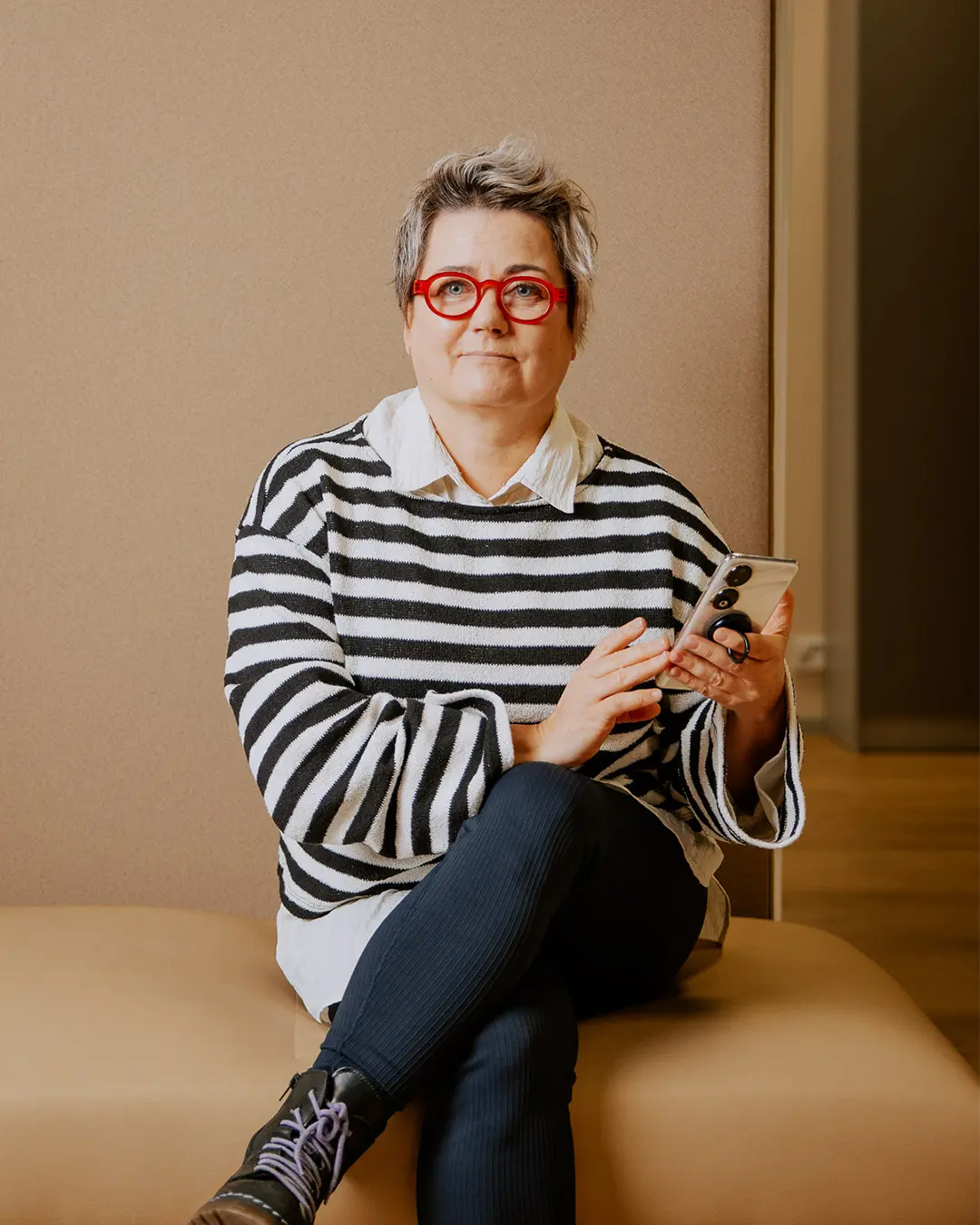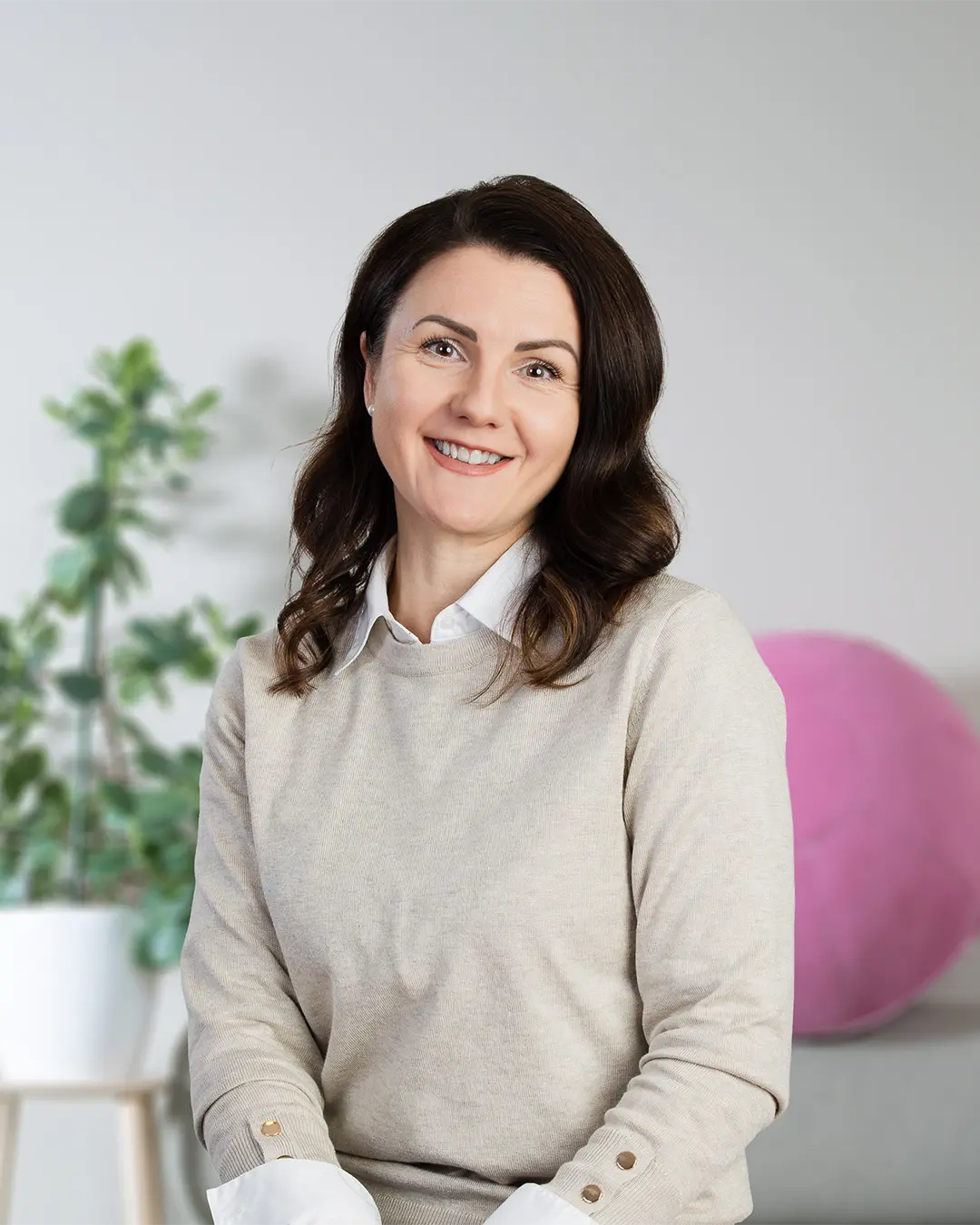 Valitse asu, joka tuntuu omalta ja sopii yrityksen tyyliin. Yksiväriset vaatteet toimivat parhaiten, ja logolliset paidat tai voimakkaat kuviot kannattaa jättää kotiin, elleivät ne kuulu brändiin. Saat meiltä ohjeet kuvaukseen valmistautumiseen ja tarvittaessa autamme stailauksessa.